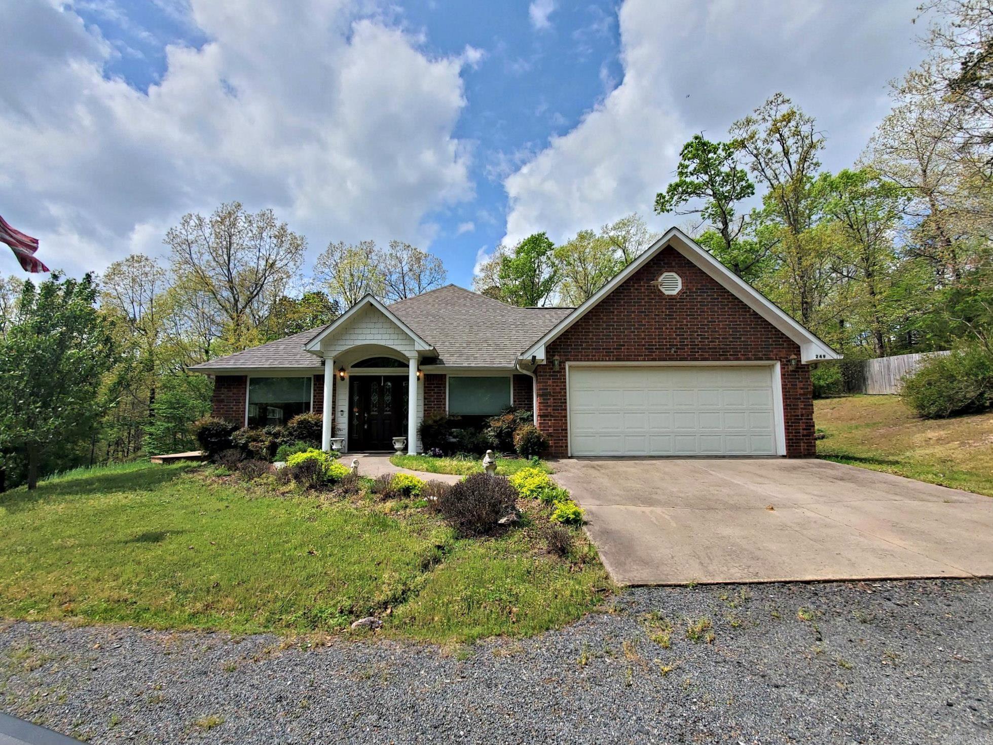 3-bedroom, 2-bath brick home on approximately 18.25 wooded acres on a paved road just a short drive from Mena, offering pretty scenic vista views. The interior provides both a comfortable living room and a large great room with a cozy gas fireplace, plus a roomy kitchen with breakfast bar, plenty of cabinetry, pantry, and a separate formal dining room for gatherings. The main bedroom suite includes double vanities, a jetted tub, separate walk-in shower, and a large closet, and the big windows throughout the home bring in natural light and showcase the surrounding land. Outside, you can relax on the front porch or side deck while enjoying the setting, and you’ll also appreciate the oversized attached garage, an 18' x 24' metal storage shed, and a 24KW whole-home generator for peace of mind during outages. This property is a nice option for buyers who value privacy, wooded acreage, and room to roam while still being convenient to town services.
