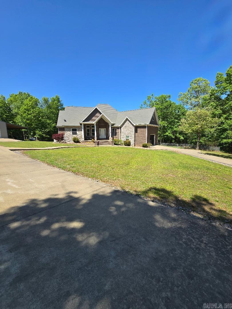 Peace and privacy await! With 36.44 acres, this 3 BR/3BA retreat offers privacy and comfort. First impression, a concrete drive leads to both the home and 40x40 shop. The inviting front porch and huge patio are ideal for outdoor entertaining. The main level offers a spacious great room that includes the living room and a kitchen featuring black shaker-style cabinetry with pull-out storage and granite countertops. A beautiful double-sided fireplace wall offers warmth and visual appeal while connecting the living room and formal dining. The primary suite offers solitude with a generous bedroom, dual vanities, walk-in closet, tub, and a spa-inspired shower complete with a built-in bench and rainfall showerhead. Also on the main level are two more bedrooms, a full bath, and office. Upstairs is a bonus room, a full bath, and walk-in attic access. Outdoors, enjoy a beautifully maintained lawn and pond. A storm shelter & backup generator ensures peace of mind year-round. A pad is ready and there are extra bricks included for a future outdoor kitchen should buyer choose.